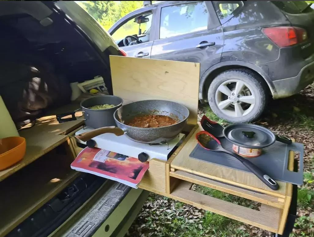 Aber wie so oft, wenn man auf Pinterest etc. nach Ideen unterwegs ist, finden sich schnell noch Ideen die danach auch noch umgesetzt werden wollen. So auch bei mir. Natürlich wollte ich auch angenehm kochen, also warum nicht noch eine Schublade einbauen für den Kocher und als Ablage, und wenn man schon dran ist, noch eine Seitenablage und ein bisschen Isolieren. Dann wird’s sofort auch gemütlicher. Und wenn man’s schon macht, Licht am Abend wäre auch noch toll. Da am nächsten Tag ja aber ohne Probleme weitergefahren werden soll, also noch eine zweite Batterie (vlt. mit Wechselrichter, dann kann man das Handy noch laden). Die Batterie wird dann ja aber nur beim Fahren geladen. Man fährt aber vlt. nicht jeden Tag. Reicht das dann? Mhm, das kann ich nicht einschätzen. Also vielleicht zur Sicherheit noch ein Solarpanel auf das Dach.