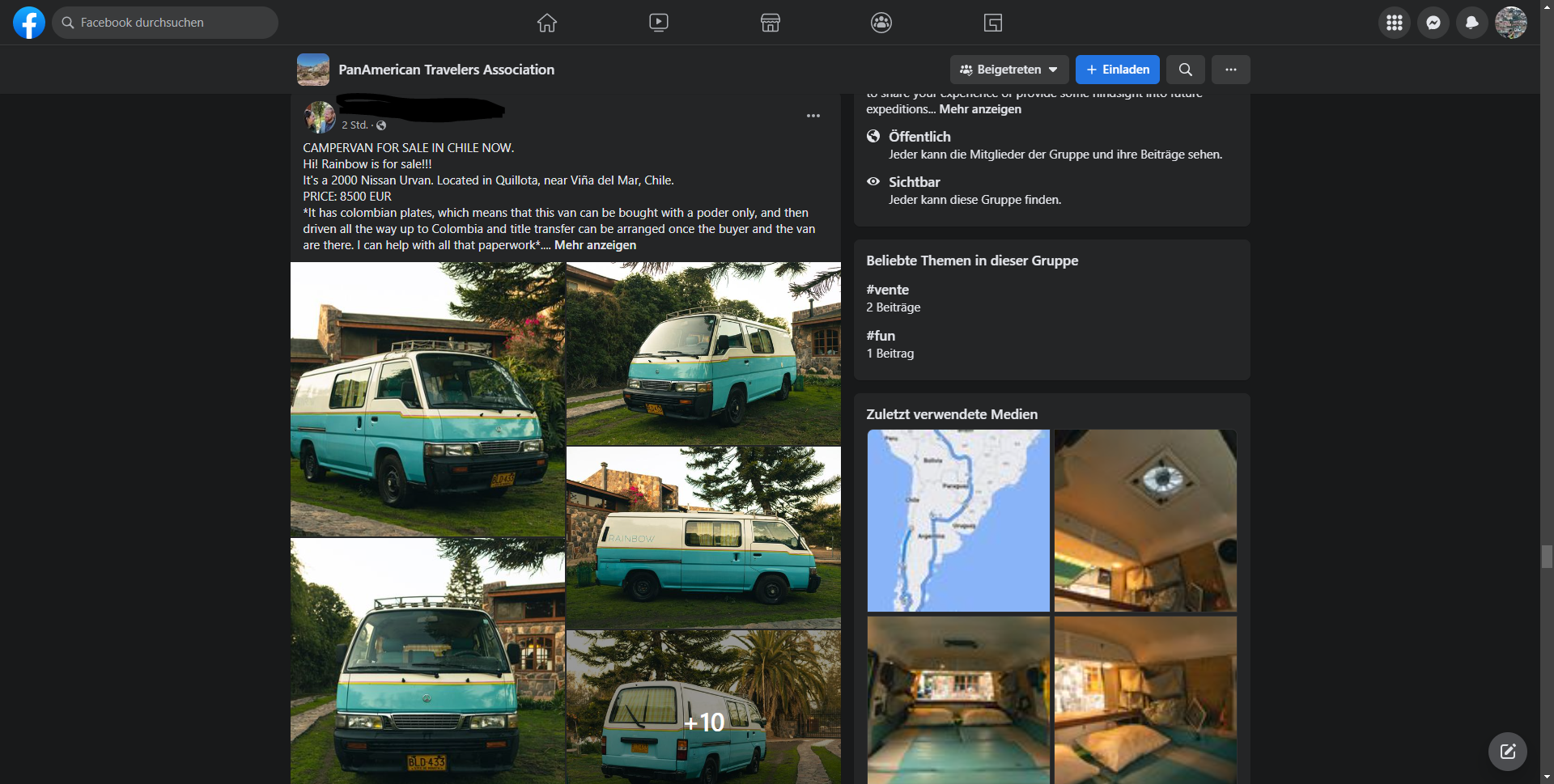 Bei meinen Recherchen stiess ich in diversen Foren auf die Facebookgruppe PanAmerican Travelers Association, in welcher die „Panamerica“-Reisenden einen Van/Camper suchten oder versuchten zu Verkaufen. Bzw. Ihre Reisepläne und Erfahrungen austauschen. Hä?! Eine Facebook-Was?… Ja. so ist es mir auch gegangen…. Aber anscheinend gibt es viele Reisende die noch Facebook benutzen. 😉