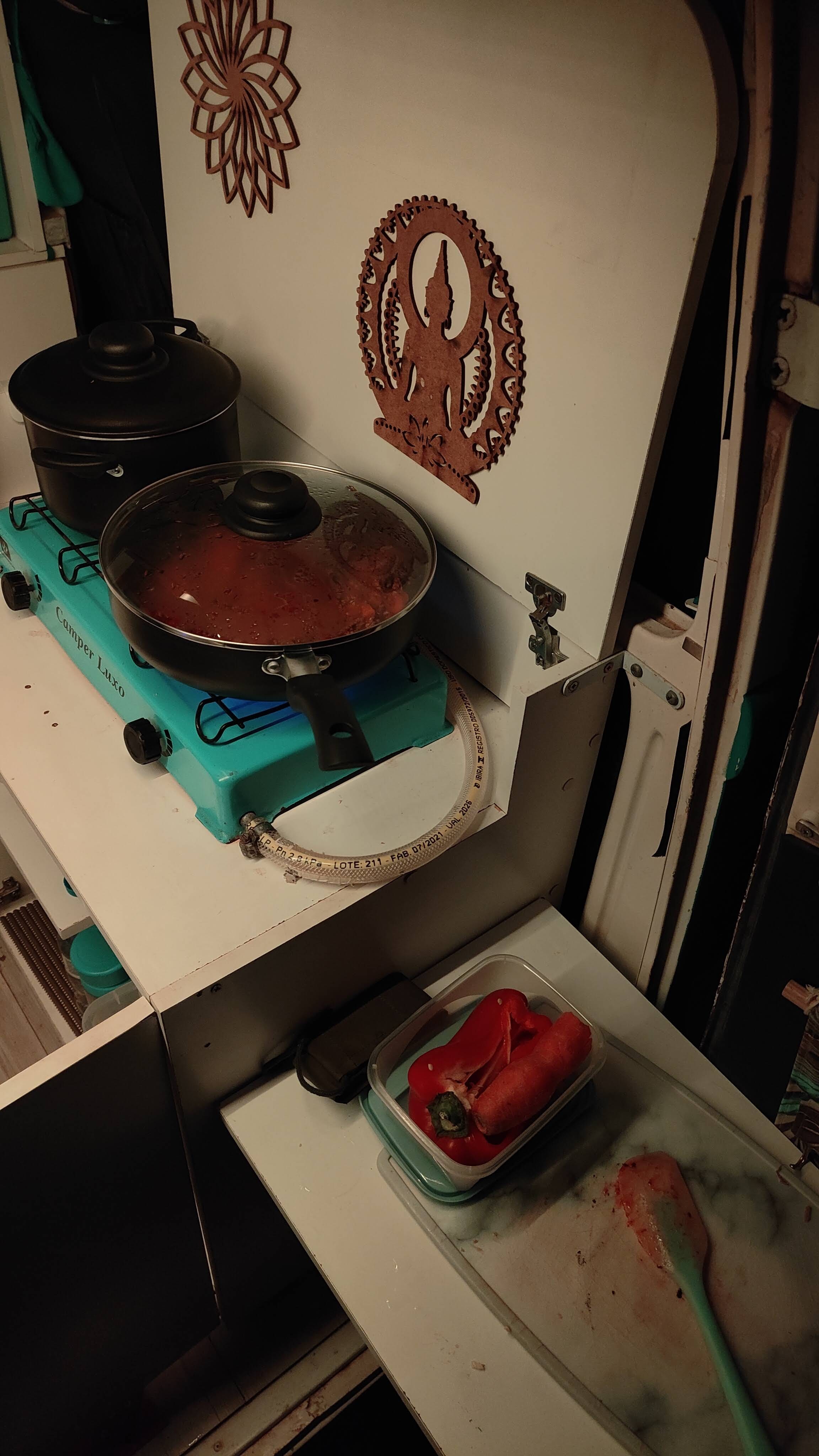 Bei ihm Zuhause angekommen, liess er mich den Bulli entdecken. Wie ich sehen konnte, war er wie ihn mir Manuela beschrieben hatte. Lediglich die Pfannen und Töpfe hatte sie entfernt.
