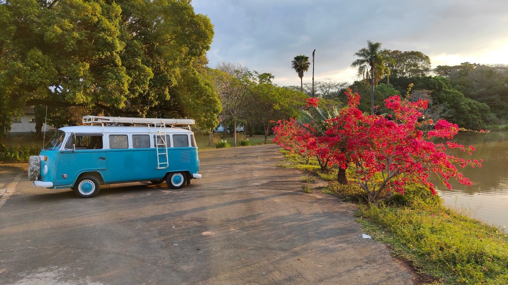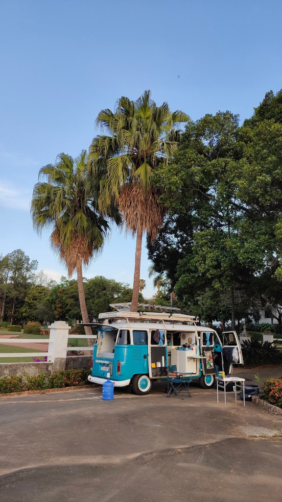 Nach einer knappen Stunde war Marquinho wieder bei mir und zog ein neues Kabel mit Kabelkanal unten im Bulli vom Motor bis zum Steuerrad. Nachdem das Kabel mit der richtigen Sicherung verbunden war, sprang der Bulli beim drehen des Schlüssels wieder frisch und fröhlich an. 😃👍