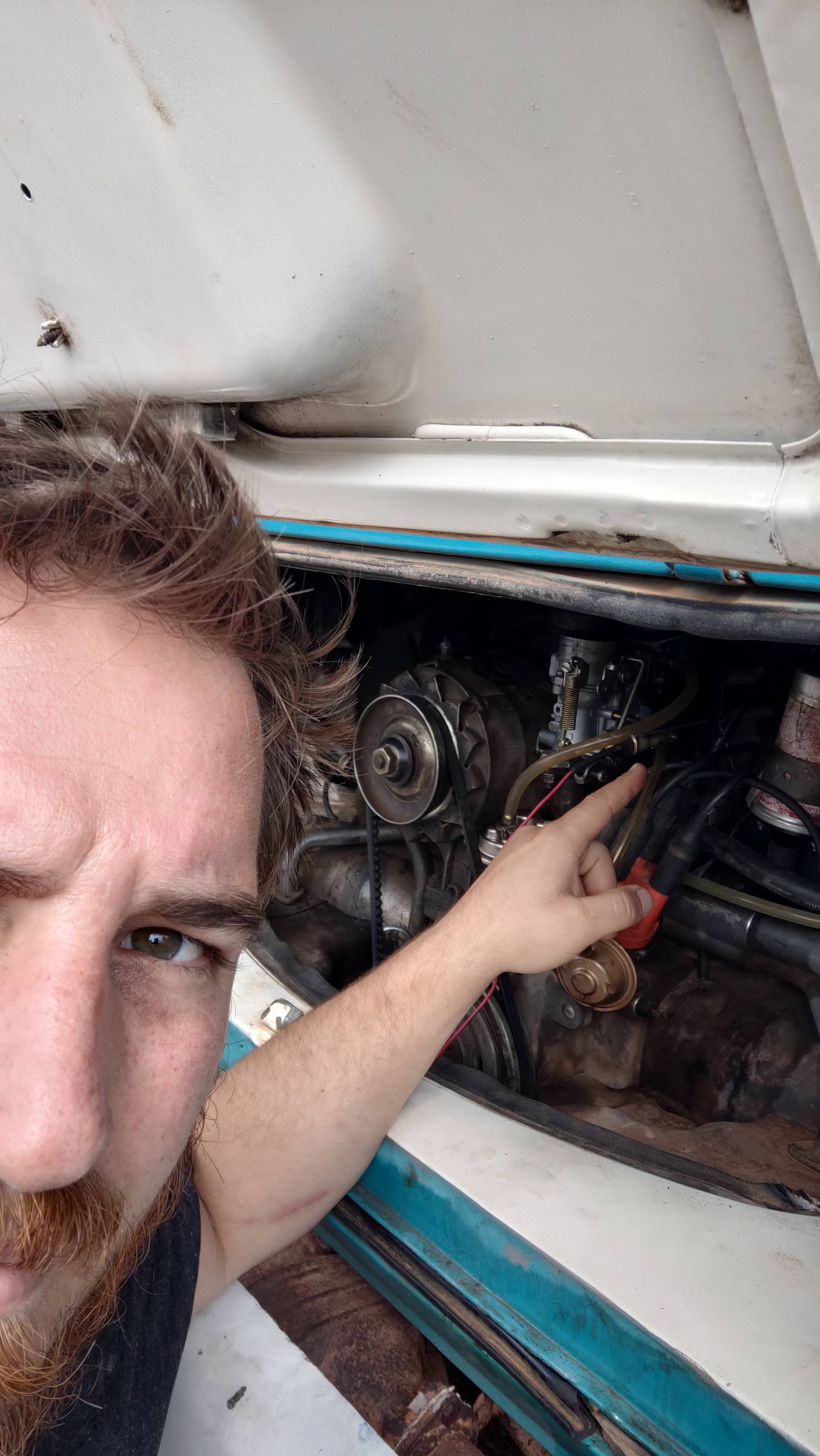 Manuela hat mir ein dickes Buch hinterlassen, wie ich meinen luftgekühlten Boxer aus allen Lebenslagen heraus wieder flott kriegen sollte. Leider kam ich aber nach der Prüfung ob die Benzinpumpe arbeitet (was sie tat…) und etwas WD40 als Starterspray in den Ansaugstutzen des Vergasers, nicht mehr weiter.