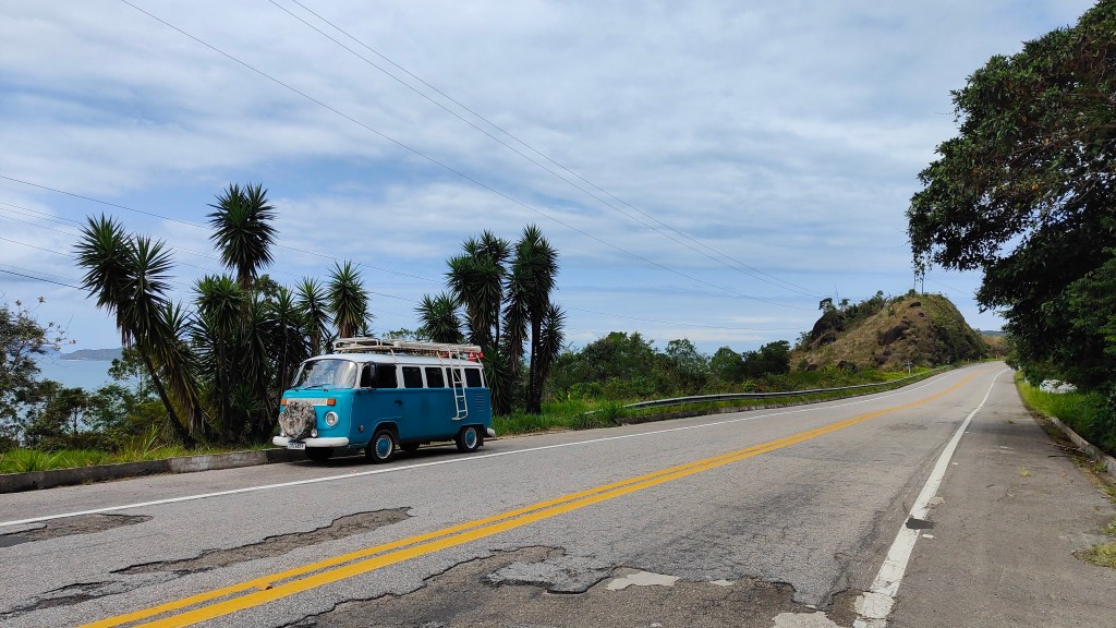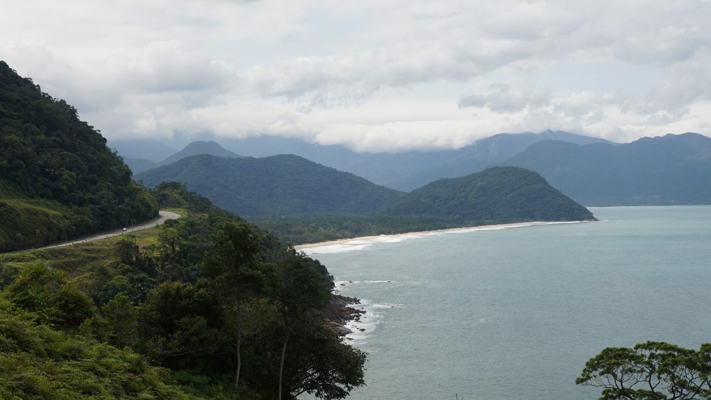 Nach dem absolut traumhaften Standort direkt am Strand in Paúba bin ich nun weiter Richtung Norden unterwegs auf einer schönen Küstenstrasse. Es geht in etwa gleich wie beim „Buurebüäbli“. Mal ufe, mal abe, mal links, mal rächts, mal füre, nur nicht nach hinten. 😉