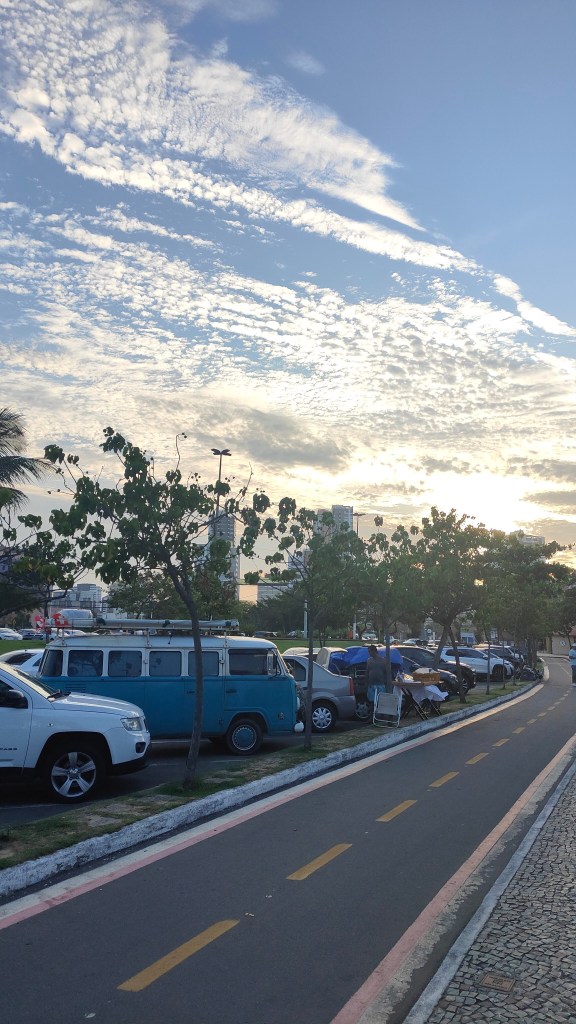 Hier am etwas windigen Strand der Curva da Jurema gibt es Gratisparkplätze mit Meersicht.