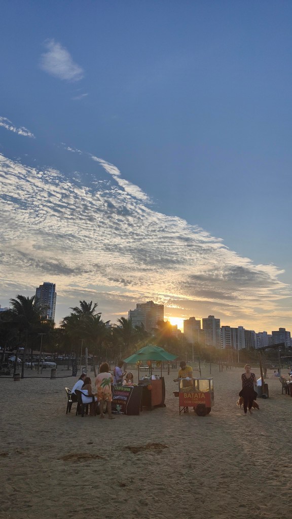 Ich kam am Donnerstag hier an, und fühlte mich direkt wohl. Die Curva ist ein beliebter Strand bei jung und alt. Es gibt diverse Strandbars, Morgenkaffees und auch wieder Strandverkäufer. 😉