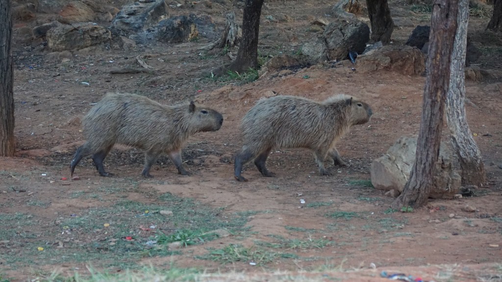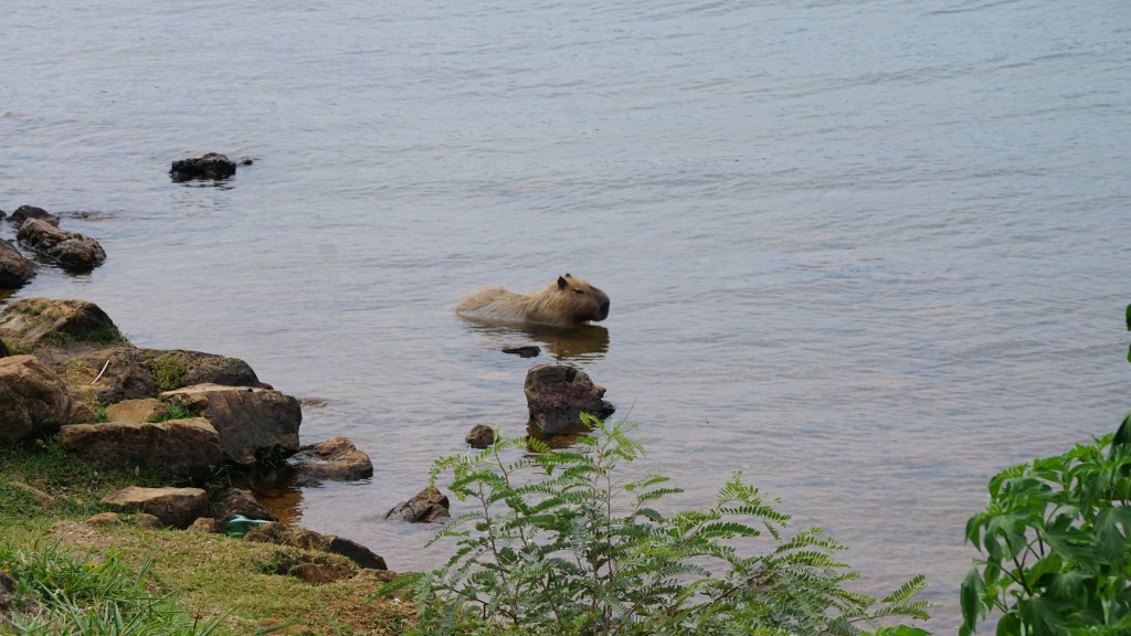 Ab Tag drei habe ich am künstlich angelegten See genächtigt und dabei meine ersten Wasserschweine (oder Capybara) von Nahem und beim Schwimmen gesehen.