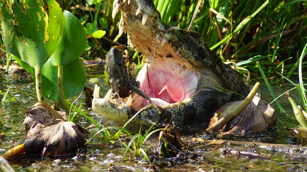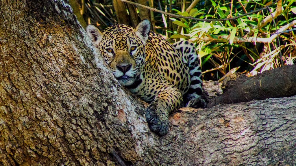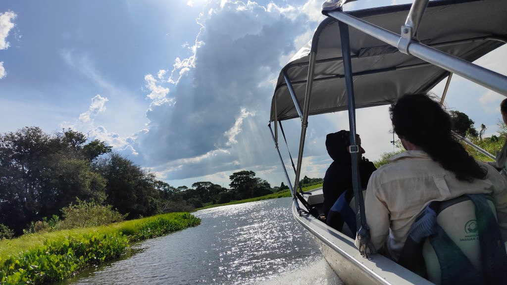 Am Anfang haben wir mehrheitlich Vögel und Kaimane gesehen. Dann aber erhielten wir den ersten Funkspruch, dass ein Jaguar gesichtet wurde. Unser Kapitän holte alles aus dem Boot heraus. und schon nach kurzer Zeit waren wir in dem Bereich, wo wir unseren ersten Jaguar gesehen haben. Es war super. Die grosse Katze war zuerst durch das Dickicht gestreift und chillte nachher auf einen hervorstehenden Baumstamm. Herrlich.