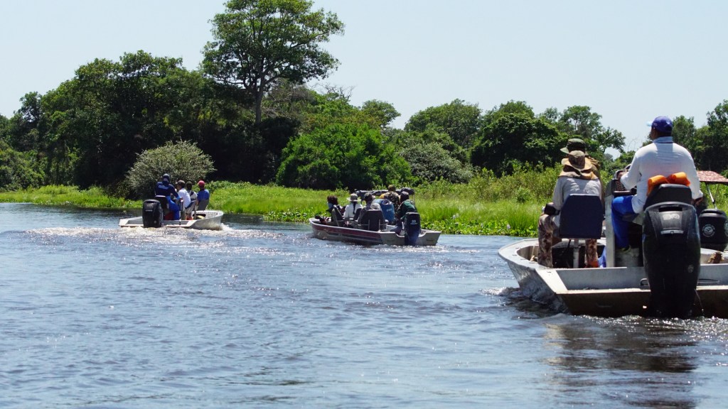 Wir fuhren mit mittlerer Geschwindigkeit auf dem Fluss bis in einen geschützten Bereich des Pantanals. Wenn an den Ufern etwas Spannendes zu sehen war, hielt der Kapitän an und unser Guide erklärte entsprechend.