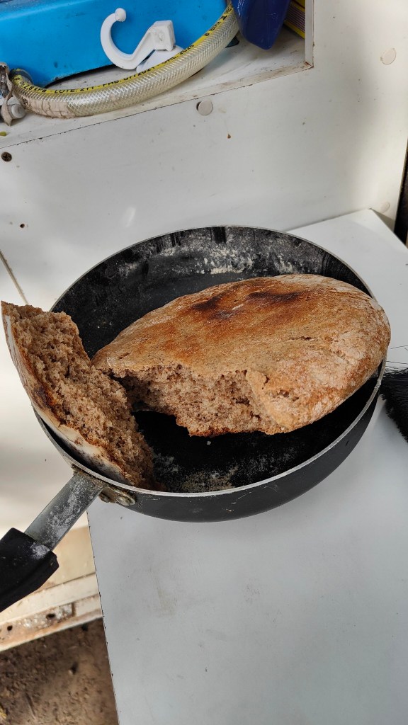 VANilla Thunder schein nicht gemacht für Schotter- und Staubpisten. 🙈 Das Brot war lecker. Das Mückenspray zum Glück mehr als halbvoll.