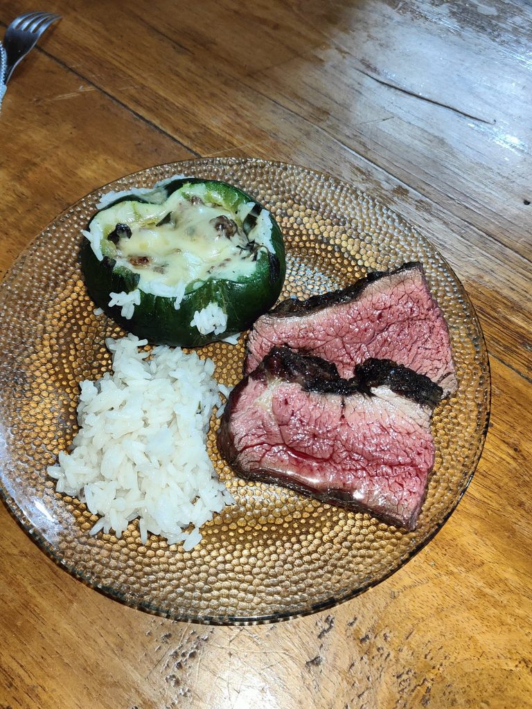 Zuerst belohnten wir uns für die Strapazen mit Zappalitos (kleinen Kürbissen, die man mit Haut isst, gefüllt mit Gehacktem und Käse), Reis und geilem Rindfleisch vom Grill.
