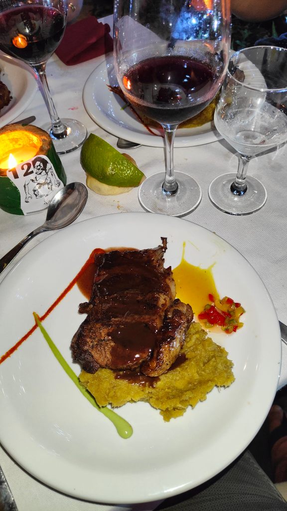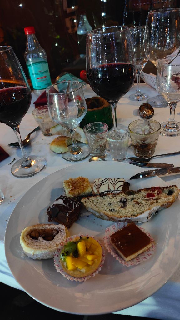 Am Abend feierten wir in einem Guarani-Restaurant. Guarani sind die indigene Bevölkerung aus Mittelsüdamerika vor der „Entdeckung“ des Kolumbus. Im Restaurant gab es deshalb auch themenbezogenes Essen. Es war sehr lecker.