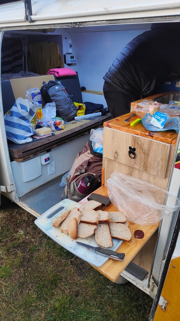 In der Lodge angekommen und geduscht, war für uns leider kein Platz mehr in der Bar, weshalb wir die, für den heutigen Tag eingeplante, Tagesration in einem Raum mit Schwedenofen aber ohne Feuer zu uns nahmen.