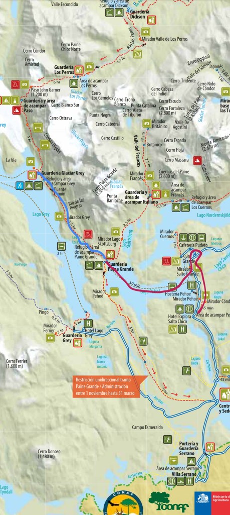 Karte Quelle: https://torresdelpaine.com/en/torres-del-paine/maps-torres-del-paine/