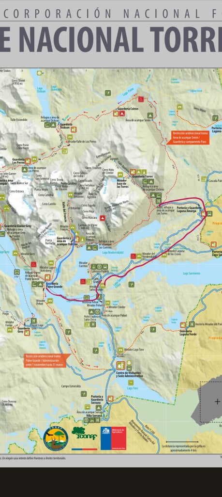 Karte Quelle: https://torresdelpaine.com/torres-del-paine/mapas-torres-del-paine/