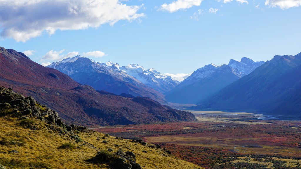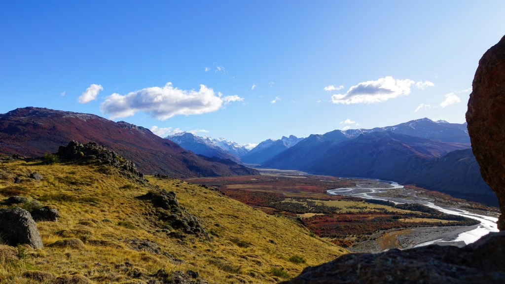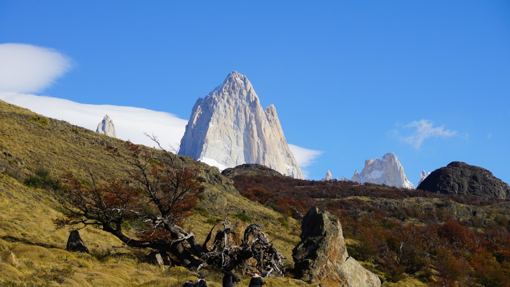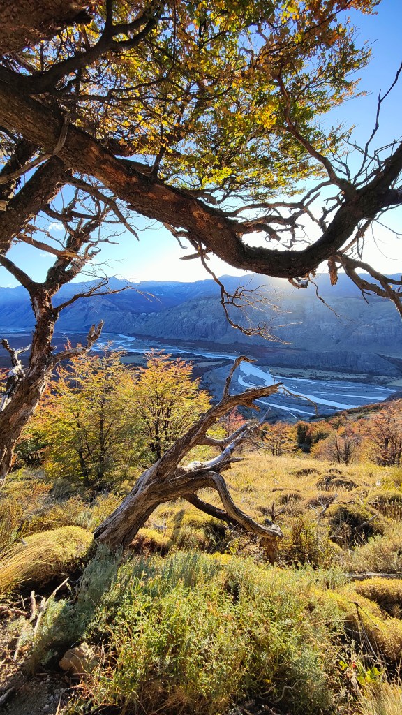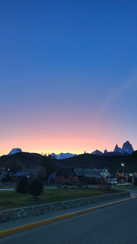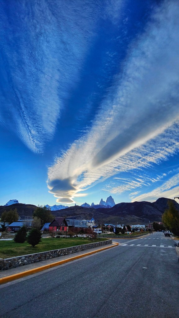 Der Weg nach el Chaltén war schön, aber sehr windig. Auf dem letzten Abschnitt bliess uns der Wind so fest entgegen, dass Vanilla Thunder nur noch knapp 60 km/h fuhr, und das im dritten Gang und das mit Pedal-to-the-metal. 🙈