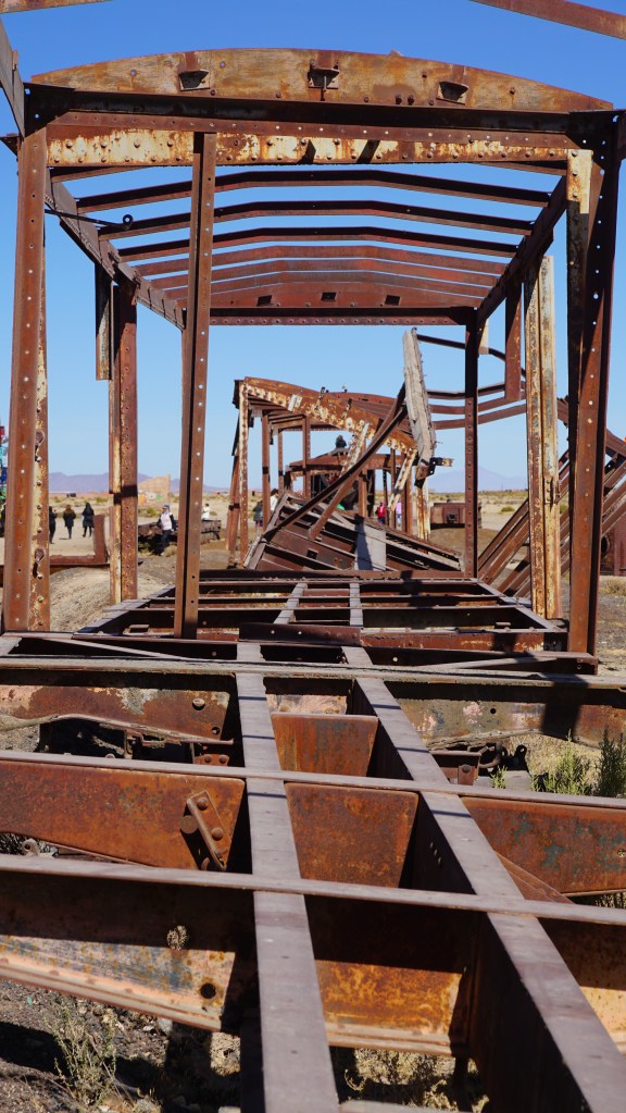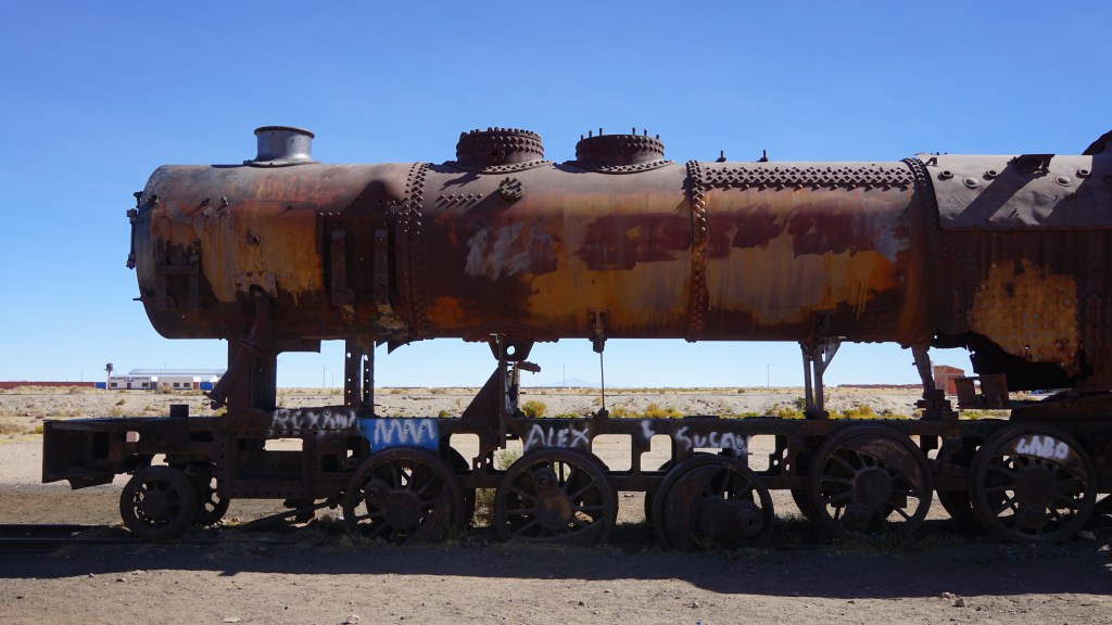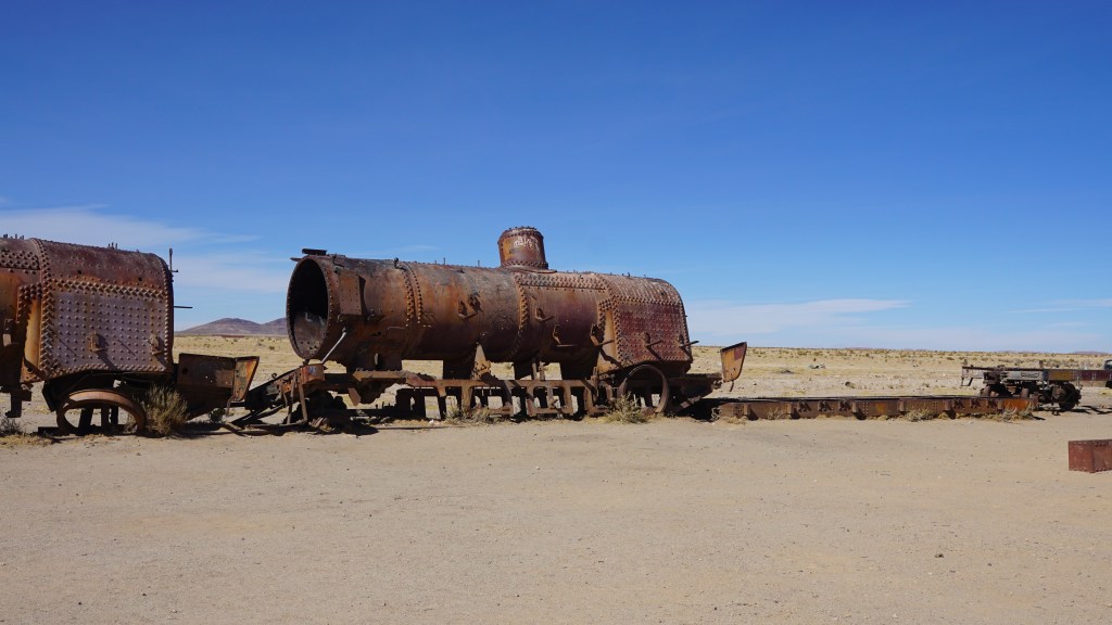 Uyuni selbst ist auch kein Highlight. Aber die Sehenswürdigkeiten schon. Von Uyuni aus fährt man, nach einem kurzen Stopp an einem Eisenbahnfriedhof, auf die grösste Salzwüste der Welt. „Salar de Uyuni“.