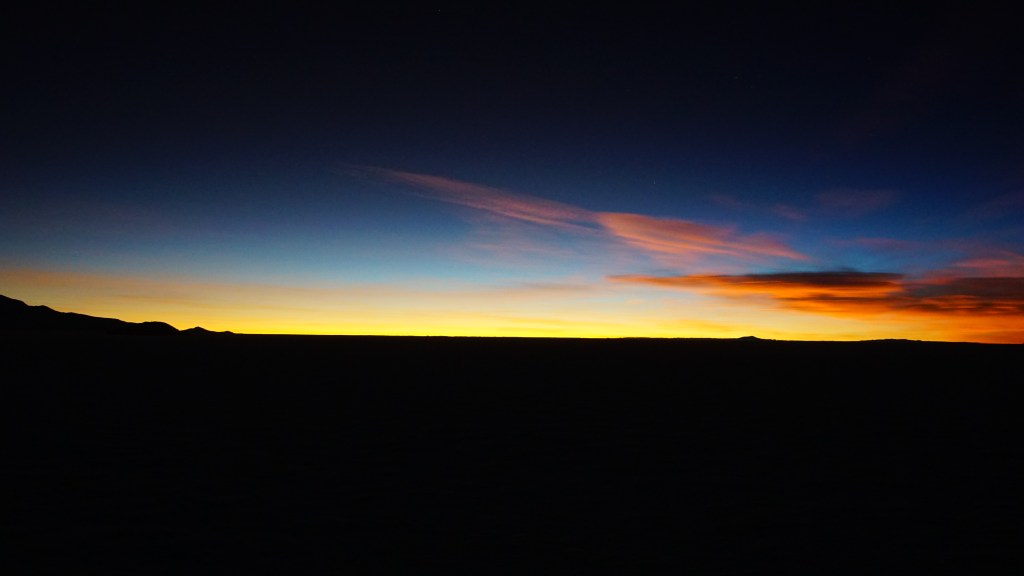 Ich verbrachte (mit nur ca. -5°C) für Winter eine eher wärmere Nacht auf der Salzpfanne. Nach einem spektakulären Sonnenuntergang zeigte sich die Milchstrasse, dann war Mondaufgang und ein paar Stunden später bereits wieder Sonnenaufgang. 😍 Es war toll.