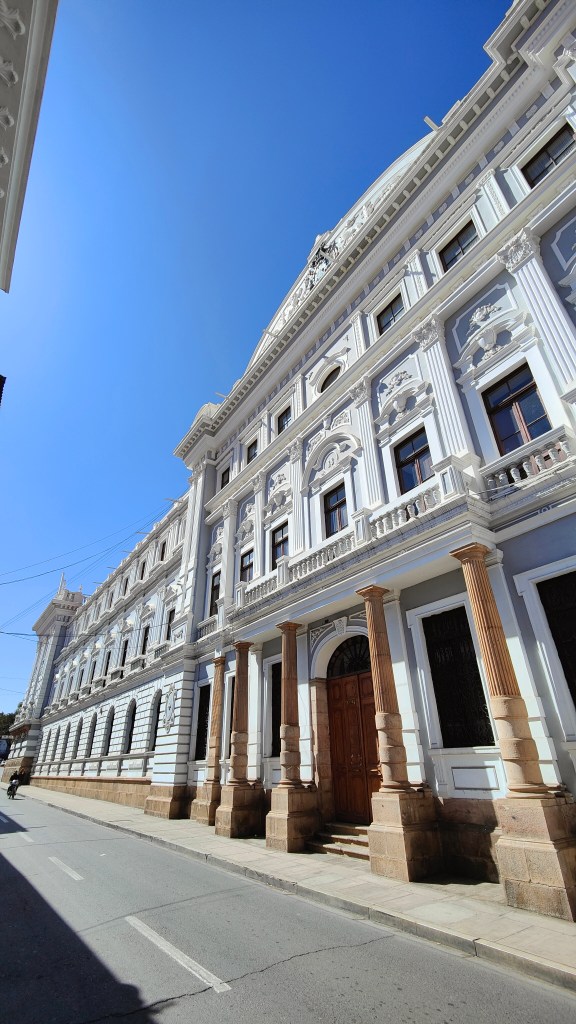 Danach ging es fast eben aus nach Sucre. Die Stadt Sucre ist eine bedeutende historische Stadt und die konstitutionelle Hauptstadt Boliviens. Sie liegt im Süden des Landes und war ein wichtiger Schauplatz während des Unabhängigkeitskampfes in Südamerika. Sucre hat eine reiche koloniale Geschichte und ist bekannt für ihre gut erhaltenen Gebäude aus dieser Zeit. Die Hauptstadt Boliviens in administrativer Hinsicht ist jedoch La Paz.